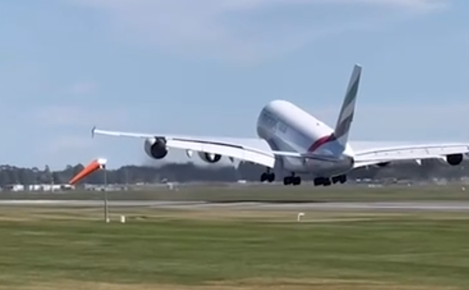 直击视频:A380客机在基督城机场临触地瞬间“改主意”