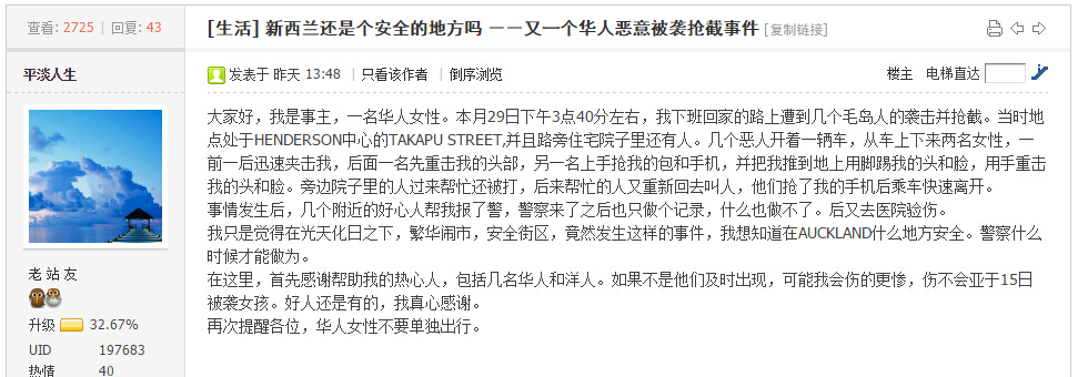 - 新西兰还是个安全的地方吗?恶意被袭抢劫事件频发