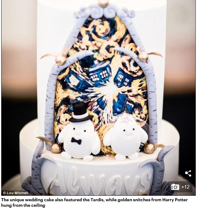 两人的婚礼结合了他们所钟爱的艺术作品Harry Potter和Dr Who,打造出一个奇幻世界。