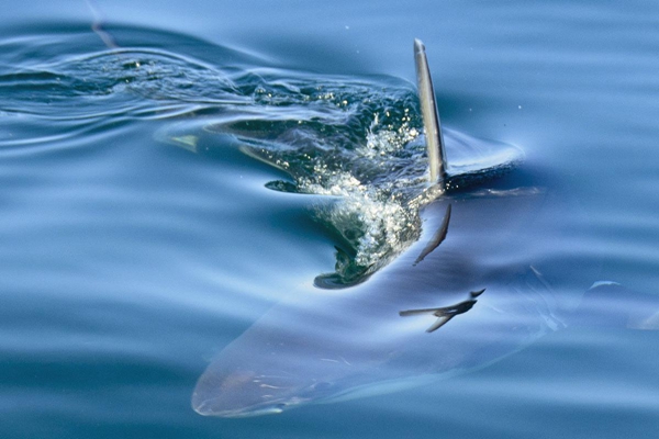 蓝鲨可长到3米长、200公斤重,因上半身为蓝色、下半身为白色而得名。夏天时,经常在新西兰的近海和港口内可见,休闲渔猎者也经常会捕获这种鲨鱼。