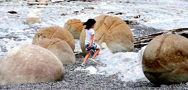 一年多前的那次大地震不止造就了这一处奇景。地震发生后,一处150米高的山体滑坡造成Hapuku River被阻断,形成了一座堰塞湖。从空中看,湖水呈现出绿宝石般的颜色,非常漂亮。再往北一点,地震导致马尔堡一处海床提升,形成莫拉基巨石(Moeraki Boulders)。