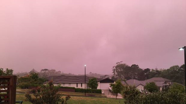 周四晚,雨后的奥克兰出现了紫色天空。MetService气象学家Tom Bell表示,这可能是和“阳光穿越云层和雨水时发生的色散有关。”