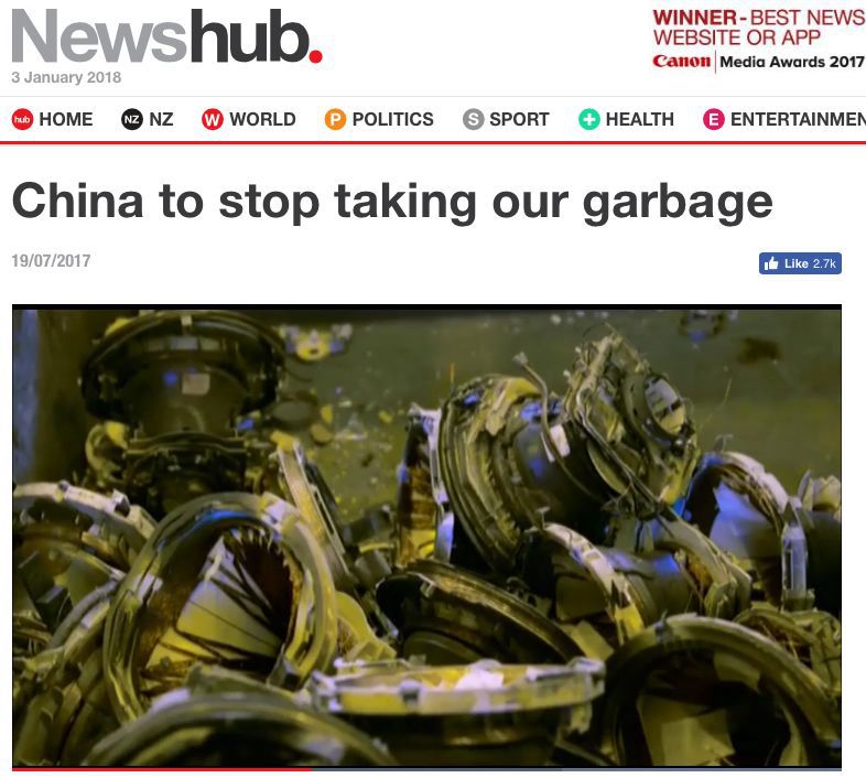 此前新西兰大部分的回收垃圾都是出国到中国,然而最近中国已经停止了对包括塑料和纸张在内的24种垃圾的进口。