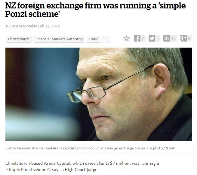 - 新西兰一外汇经纪商涉嫌庞氏骗局 欠款700万纽币