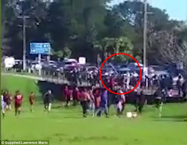 一段从球场另一端拍摄的视频显示,球场一角聚集了一群人,可以听见一名女子在惊恐地尖叫:“他们为什么攻击(我)?还有孩子在,他们有什么毛病?”