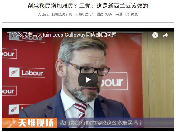 今年6月,Ian Lees-Galloway在接受天维网记者采访时表示,新西兰有两类移民,一类是经济类移民,这关乎新西兰对世界的需求,移民带来了新西兰经济发展所需的技能和工作经验。另一类是人道主义移民,这关乎世界对新西兰需求。