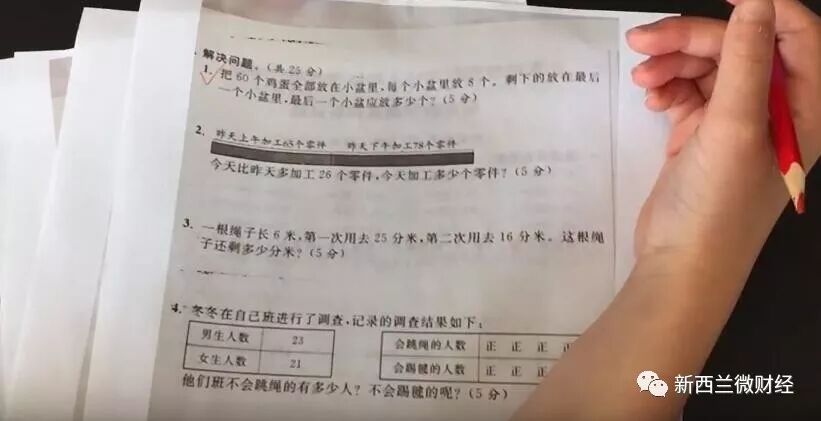 【天维网 新西兰微财经 综合】 最近一位家长转给小编一个短视频,一位新西兰的小学4年级华人学生,做一组中国小学2年级数学题,结果……👇👇