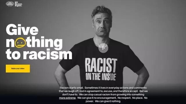 号召大家都贡献一点“种族歧视” “种族歧视需要你的帮助才能继续蔓延!” 原来, 这位导演是用一种冷嘲热讽的形式, 号召新西兰人小心身边的种族歧视。