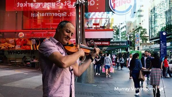 在这样一个流动量堪称全新西兰数一数二的商业街口,突然听到一段温柔的旋律,或者一指空灵的泛音,无论你是夹着小跑不想迟到的通勤一族,还是拎着大兜小兜的剁手党,你的脚步都会不自觉地慢下来。