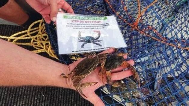 丰盛湾地区地区议会昨日公告:“人们应该留意亚洲梭子蟹的情况,并记住转移活蟹是违法行为。我们鼓励人们杀死它们,并将相关情况报告给地方议会,电话是0800 STOP PESTS (0800 786 773)……”