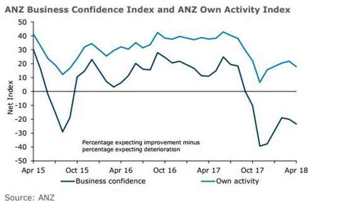 ANZ最新公布的4月商业信心指数印证了这一点——所有行业都出现了赤字,并且有近23%的企业对未来一年表示悲观,其中,最为悲观的是农业企业,相对较为乐观的是服务业企业。