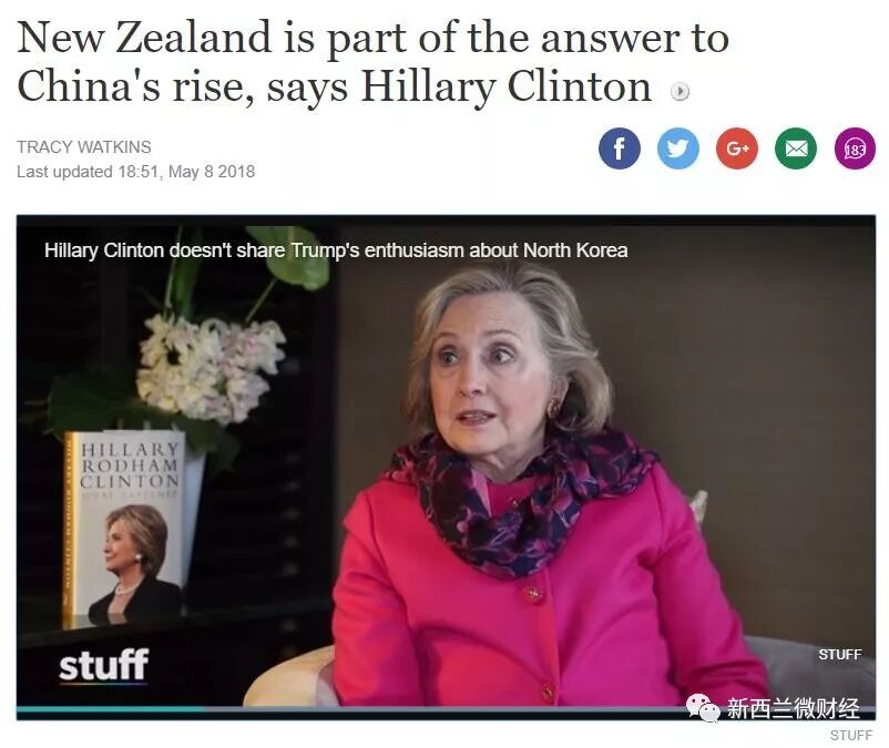 而这一点,和刚刚到访新西兰的美国前国务卿希拉里·克林顿的观点不谋而合。