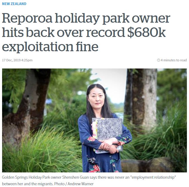 一家位于罗托鲁阿的汽车旅馆,因为剥削工人以及非法收取所谓的巨额“中介费”被劳工部告上法庭,一审被判处罚金68万纽币,创下了劳工部起诉雇主历史上的最高赔偿记录。