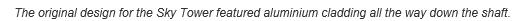 天空塔原来的设计师Gordon Moller表示,天空塔设计本来是有一个“优雅的塔尖”,顶部用铝板包裹,并向下延伸。
