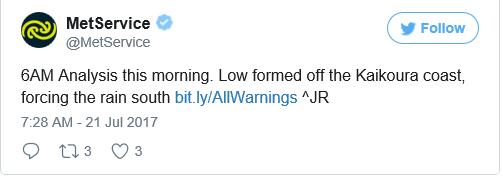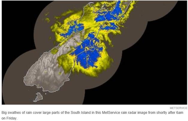 旦尼丁预计从周五到周六中午会有150-200毫米的降雨量,坎特伯雷地区还可能受到强烈南风影响。