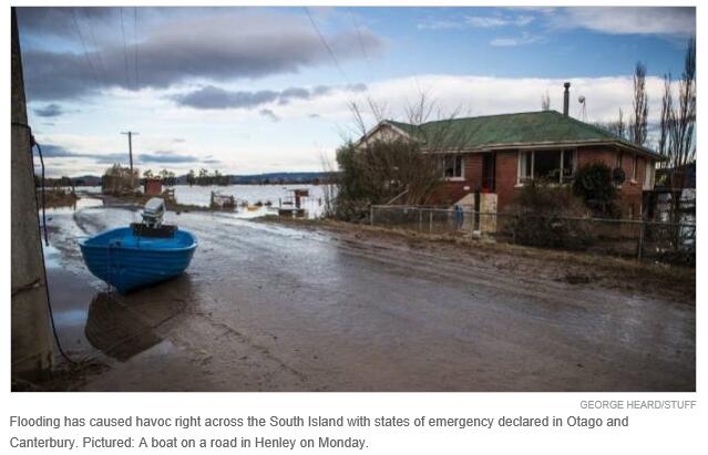 但尼丁、蒂马鲁、Waitaki……大部分的奥塔哥地区上周五、周六都被宣布进入紧急状态,洪水堵门,许多家庭被迫疏散。