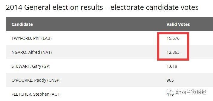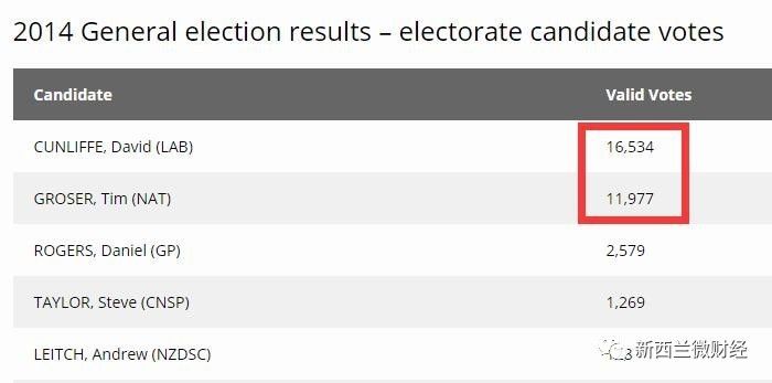 下面的图是今年大选New Lynn地区的结果,注意红框中的选票,今年工党仍然拿下了这个区,优势不到2000票。
