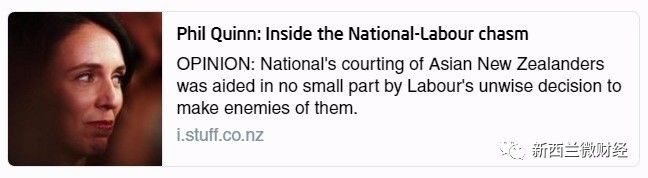 在另外一篇文章中,一位前工党背景的作者抱怨,在国家党拉拢新西兰亚裔的时候,工党“却选择和他们为敌”,“是很不明智的决定(unwise decision)”,“给对手帮的忙不算小”(aided in no small part)。