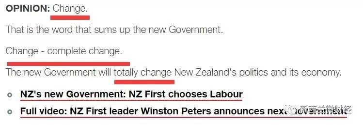 ——减少移民,预期每年净移民砍2-3万人(已基本确认); ——计划建造10万栋房屋,一半将在奥克兰(已基本确认); ——外国人不允许在新西兰投资房地产或牧场; ——有可能退出TPP谈判; ——改变央行的货币政策; ——启动奥克兰港搬迁计划; ——第一次进入政府的绿党将在具体政策上发挥影响力,如气候变化等。 回到核心的那句话:变革不在路上,它已经来了。