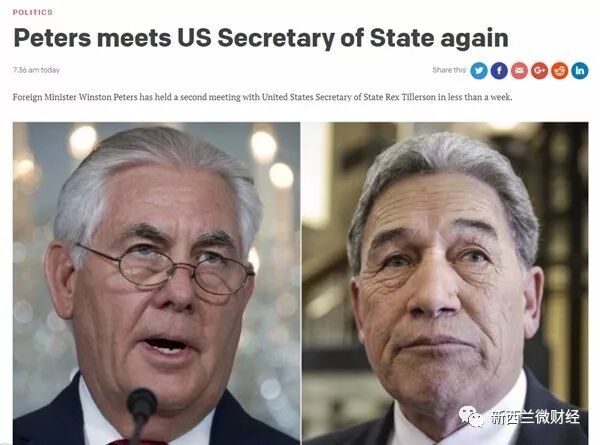 据报道,在不久前的东亚峰会期间,新西兰外长和美国国务卿蒂勒森有过两次会谈。