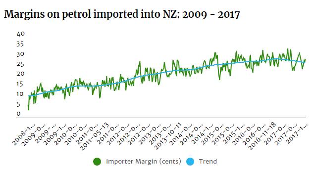 今年早些时候,前能源部长Judith Collins发布的一份报告发现,燃油市场可能缺乏竞争,近年来投资方面的利润率也一直以不成比例的幅度上涨。
