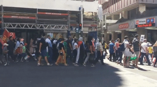 游行队伍在Aotea广场汇合,并沿着Queen Street行进。