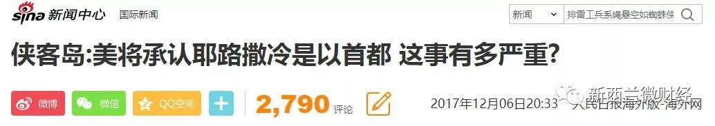 稍早,新西兰总理杰辛达·阿德恩表态说,美国迁移大使馆“将令事情更难办”。
