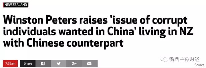 新西兰外长Winston Peters此前还专门谈到在新西兰配合中国追逃追赃问题。