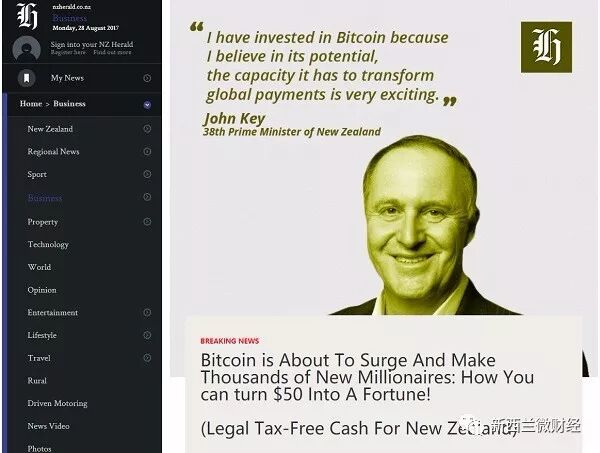 【天维网 新西兰微财经综合Newshub等】怒了!新西兰前总理约翰基投资比特币已赚翻?甚至为比特币代言?