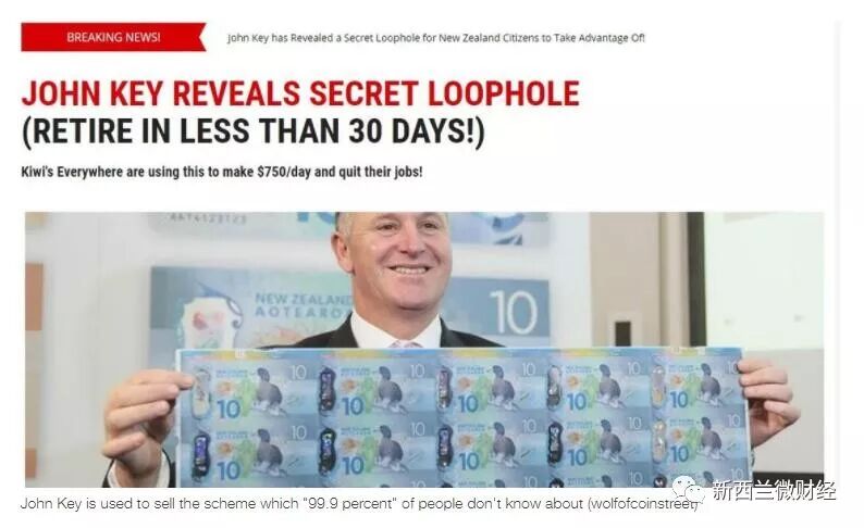 新西兰总理约翰基这次没有选择沉默,而是果断干预。最近通过媒体,约翰基爵士表示,所谓他本人投资1000刀变身3亿的说法,纯粹子虚乌有。而他也通过法律途径,要求Facebook方面撤下所有和这个假网页有关的链接,阻止这种虚假宣传通过社交媒体传播。