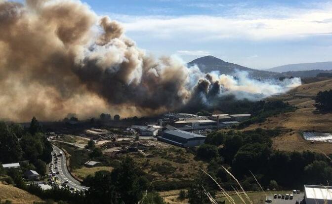 火势一度难以控制,滚滚浓烟使整个山谷一片灰黑,浓烟后方的视线全部被遮挡。