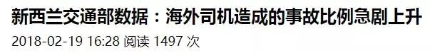 - 新西兰交通部数据:海外司机造成的事故比例急剧上升
