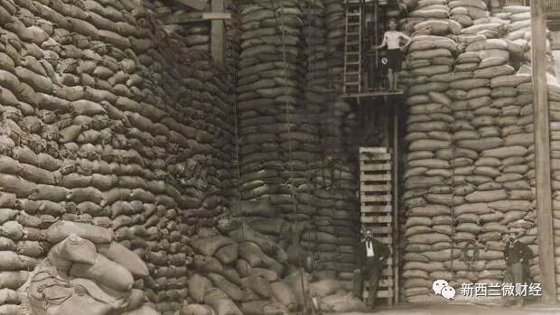 奥克兰也成了殖民者最早开始糖厂的地方,1900年代的Colonial Sugar Company,里面一袋袋的白糖堆积如山: