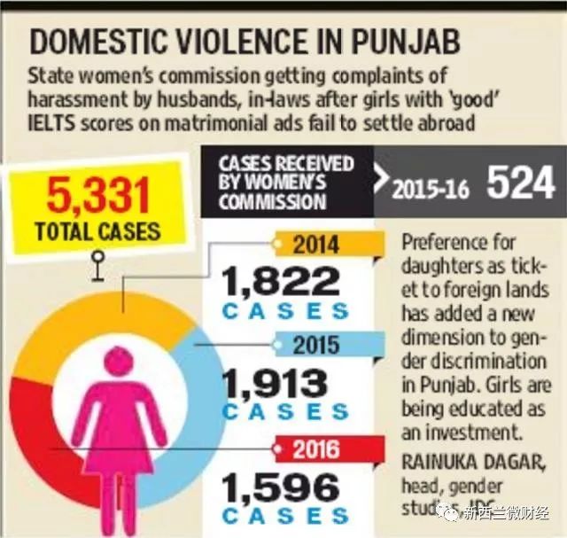 印度旁遮普地区的报道称,家暴情况通常会在女方未能考到理想的雅思成绩或者留学申请失败时发生。