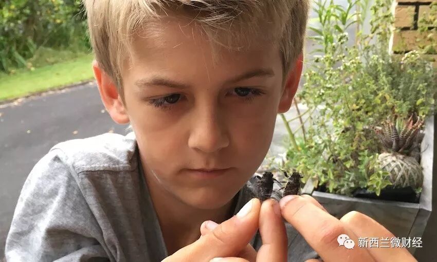 现在,除了各种昆虫,他还养着兔子、螳螂、鸡和青蛙。除了知了,他也喜欢玩蜘蛛、蛾子、毛毛虫还有新西兰的weta。当然,他最喜欢的是知了。