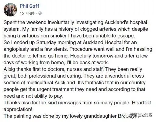 Phil Goff昨晚发推文称,自己的家族有心脏病史,虽然自己不抽烟,但“还是未能逃脱”。