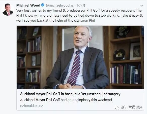 工党Mt Roskill议员、被认为是Phil Goff衣钵传人的Michael Wood今天早晨发推,“希望我的朋友和前辈尽快恢复健康”。