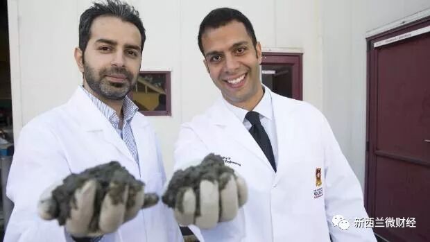 Aydin Berenjian博士(右)以及博士生Mostafa Seifan来自新西兰怀卡托大学。这两天,新西兰媒体纷纷报道两人发明了“自愈水泥”的事情: