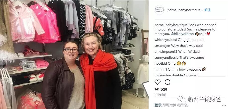 据猜测,希拉里在奥克兰的儿童服装店的买东西,可能是为了送给新西兰孕妈总理Jacinda Ardern的。