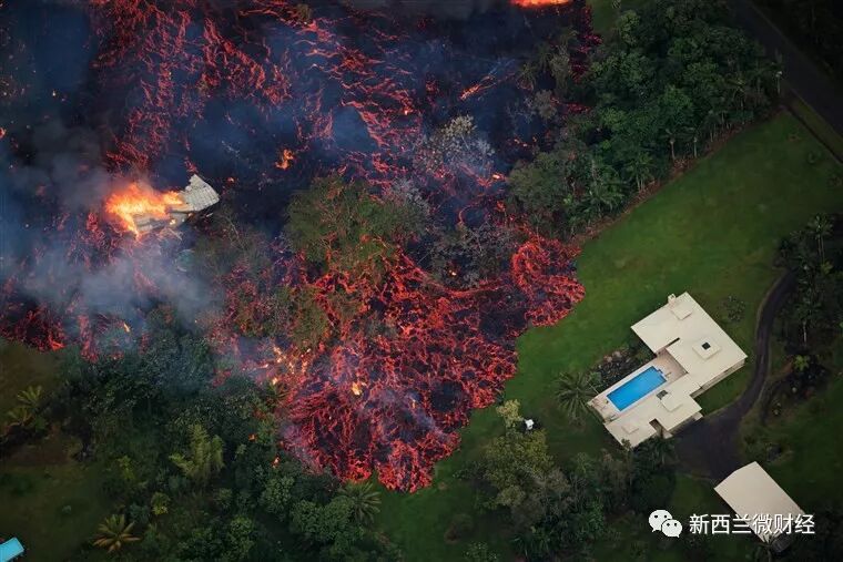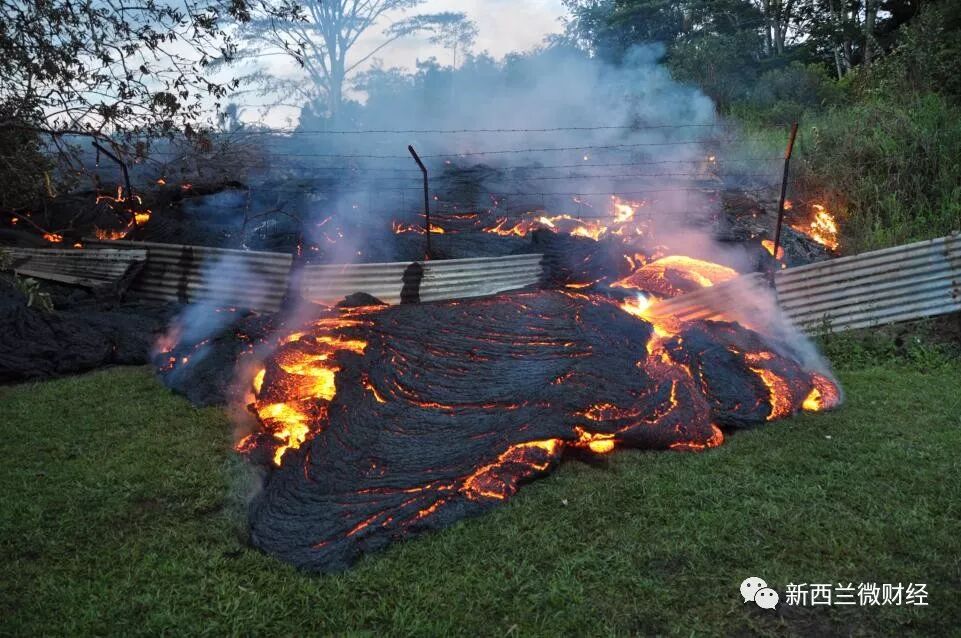 大岛东边普纳区的Leilani Estates社区,过去以繁茂的热带林中错落的木造住宅为特色,但在火山爆发後,该社区却出现了地面裂缝,喷发了高达80至100英尺的熔岩喷泉。 该社区已出现了多道裂缝,当局预估该裂谷地区,可能将出现更多熔岩喷发口。透过无人机拍摄,呈现了熔岩从地面已形成的裂缝喷涌而出,向莱拉尼庄园社区的房舍蔓延。熔岩流经过之处,树木都因高温焚烧,该社区最少两个区域已发生火灾。而居住在此社区的1700为居民,都已被当局勒令撤离。 新西兰地质学家对这次喷发相当关注的原因,从岩石成分、喷发原理、地震以及气体成分的构成,这次都和奥克兰的地质情况相当类似。 这次夏威夷喷发的火山是由玄武岩组成盾形火山,这种火山并不像很多火山呈现高耸高耸陡峭的尖锥状火山,盾形火山是在地面形成宽阔而浅的圆顶。 因此盾形火山并不会如尖锥状火山那样爆炸喷发,而是熔岩穿过地幔向上移动,岩浆在地表中寻找岩石薄弱点的裂缝穿越而流出。 奥克兰和基拉韦厄火山最接近的就是Rangitoto,Rangitoto被看成是一个比较小的盾型火山。 新西兰的科学家说,本次夏威夷火山喷出的岩浆成分,和奥克兰地区发现的相同:玄武岩成分的岩浆的粘性更低,这种岩浆喷射出地面时,会形成更高的喷射体。 科学家说,奥克兰地下遍布的火山岩洞就是这种岩浆曾经大面积蔓延的证据。 夏威夷火山喷发后的地震情况以及气体危害,据分析也会和奥克兰未来的喷发一致。 在夏威夷火山喷发后,除火山南部发生5.6级地震外,之后更出现了6.9级的强震。许多大岛居民在社交视频中,分享房屋剧烈摇晃,游泳池中的水激烈摇动,或是商场内物品掉落满地的影片。