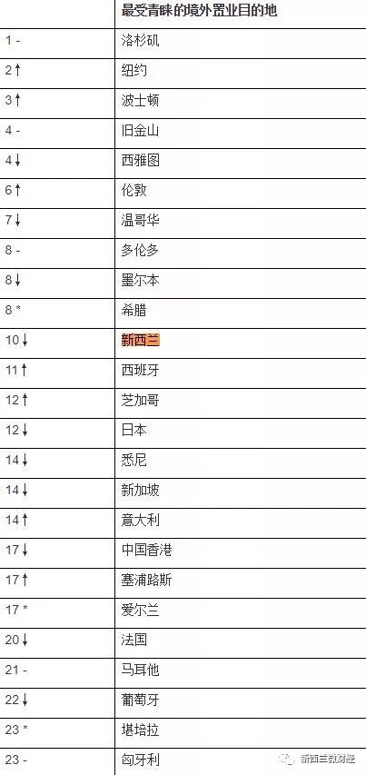 新西兰在“最受青睐的移民目的地”中排名第6。低于这两年的移民黑马爱尔兰。