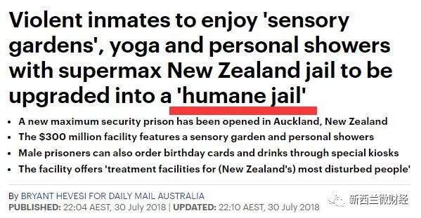 英国每日邮报:“暴力犯罪的囚犯享受‘感官花园’(指康复治疗花园)、瑜伽和私人淋浴房,新西兰监狱升级为'人道监狱'”: