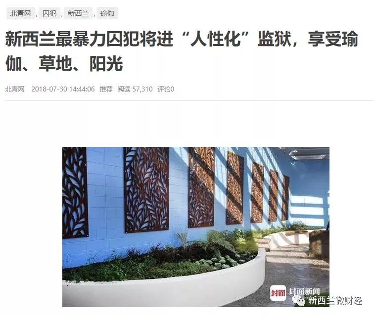 国内媒体昨天也跟风报道:“新西兰最暴力囚犯将进‘人性化’监狱,享受瑜伽、草地、阳光”