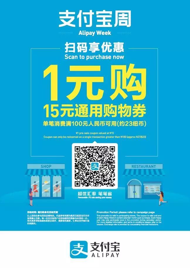 支付宝周来袭新西兰!1元变成15元!最便宜只要2折起!