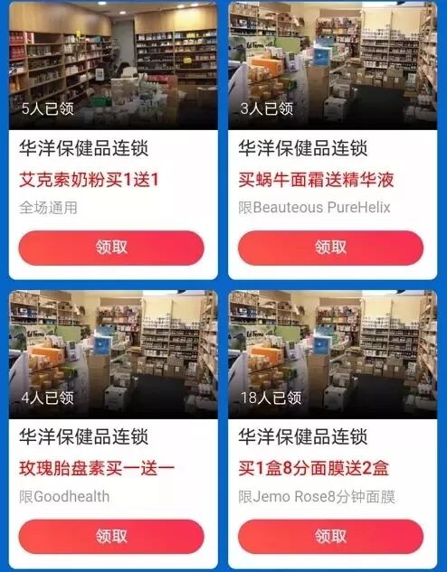4、华洋保健品连锁:艾克索奶粉买1送1;卖蜗牛霜送精华液;玫瑰胎盘素买一送以,买1盒8分面膜送2盒!