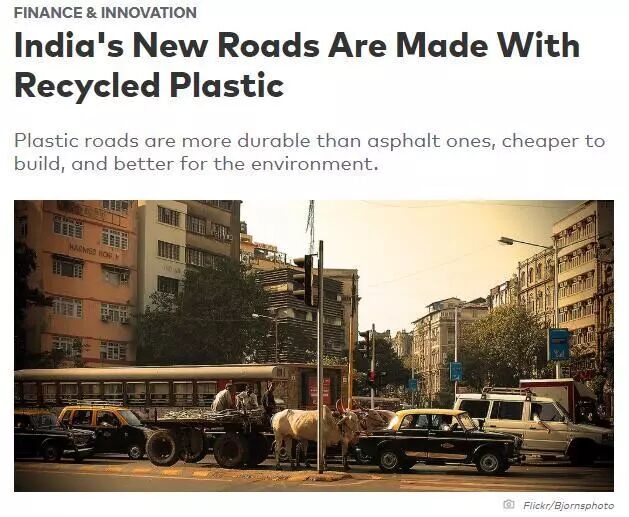 目前全印度有超过33000公里的路面都使用了回收塑料进行建造,2017年,印度总理Narendra Modi就已下令,所有的新路在建造的时候都要使用这种含塑料的材料。
