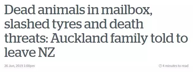 如果有人往你家信箱毫无来由地塞动物死尸,威胁信,扬言要把你从新西兰赶出去,甚至“亲手灭了你”,