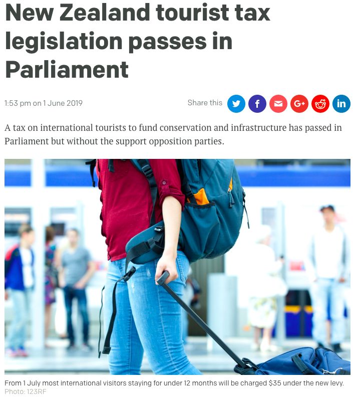 外国游客将额外支付支付35纽币/人,