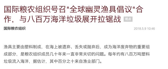 于是,就发生了许多渔船在捕捞后,将渔网丢弃在海洋中的事情。