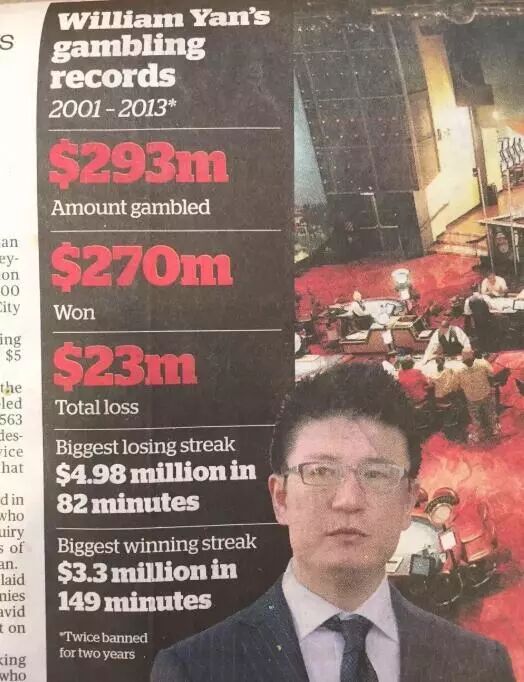 在2001年到2013年期间,他在赌场资金记录超过了2.93亿纽币,其中最猛的一次,是在82分钟内,在奥克兰天空城赌场惊人连败,输掉近500万纽币。